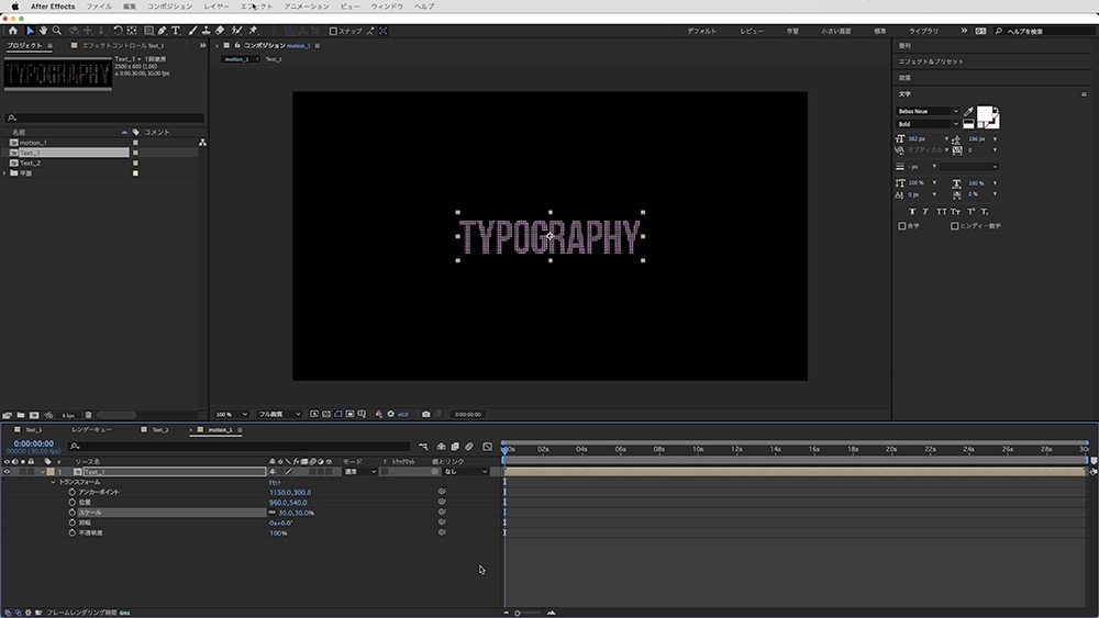 同様に「Text_2」>「トランスフォーム」>「スケール」を30%にします。