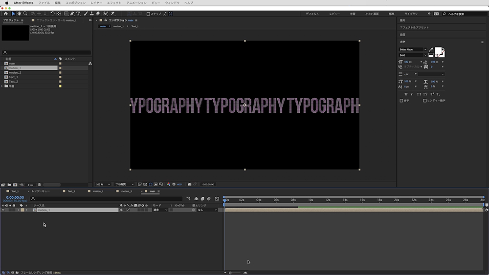 テキストアニメーション用のコンポジション「motion_1」を作成します。
