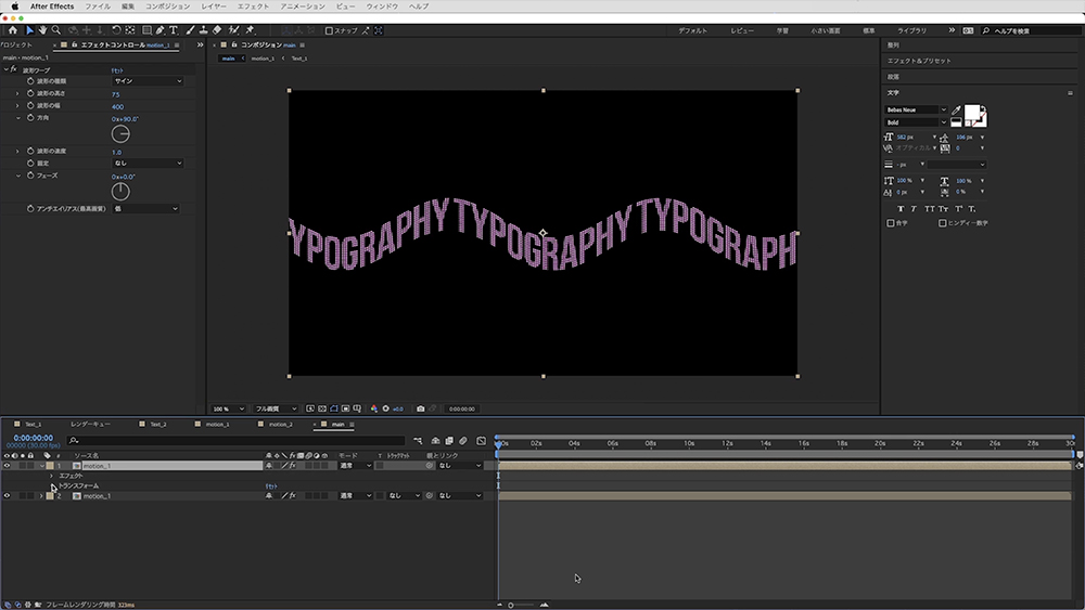 「motion_1」に「エフェクト」>「ディストーション」>「波形ワープ」を適用します。