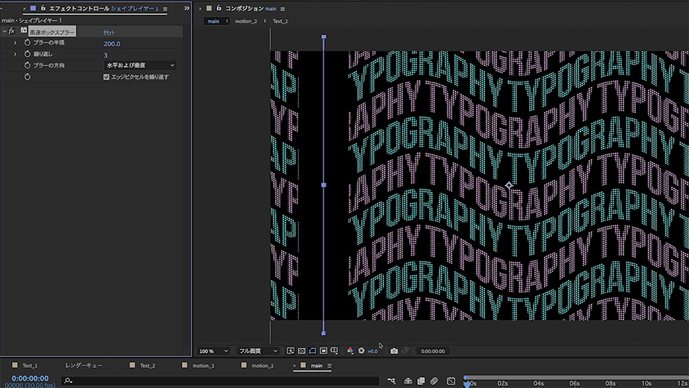 「motion_2」にも「エフェクト」>「ディストーション」>「波形ワープ」を適用します。