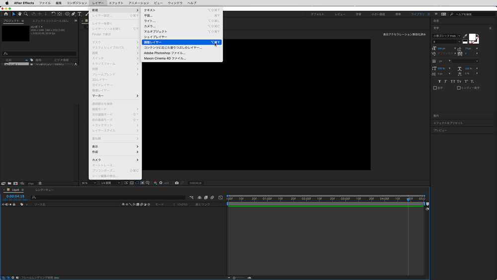 「カウンター」だけを表示させたいときには、「調整レイヤー」を使います。「調整レイヤー」に「エフェクト」>「エクスプレッション制御」>「カウンター制御」を適用し、カウンター用の値を設定します。