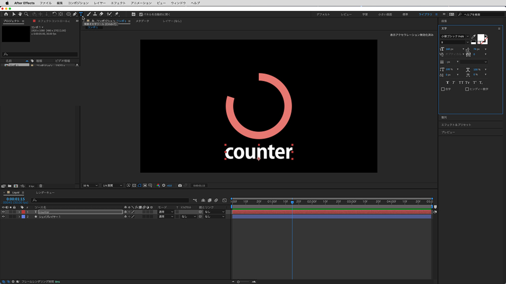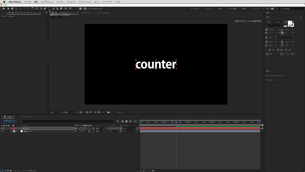 カウンターは「テキスト」で文字レイヤーを作成する必要がありますが、この時の文字は何でも(何文字でも)構いません。