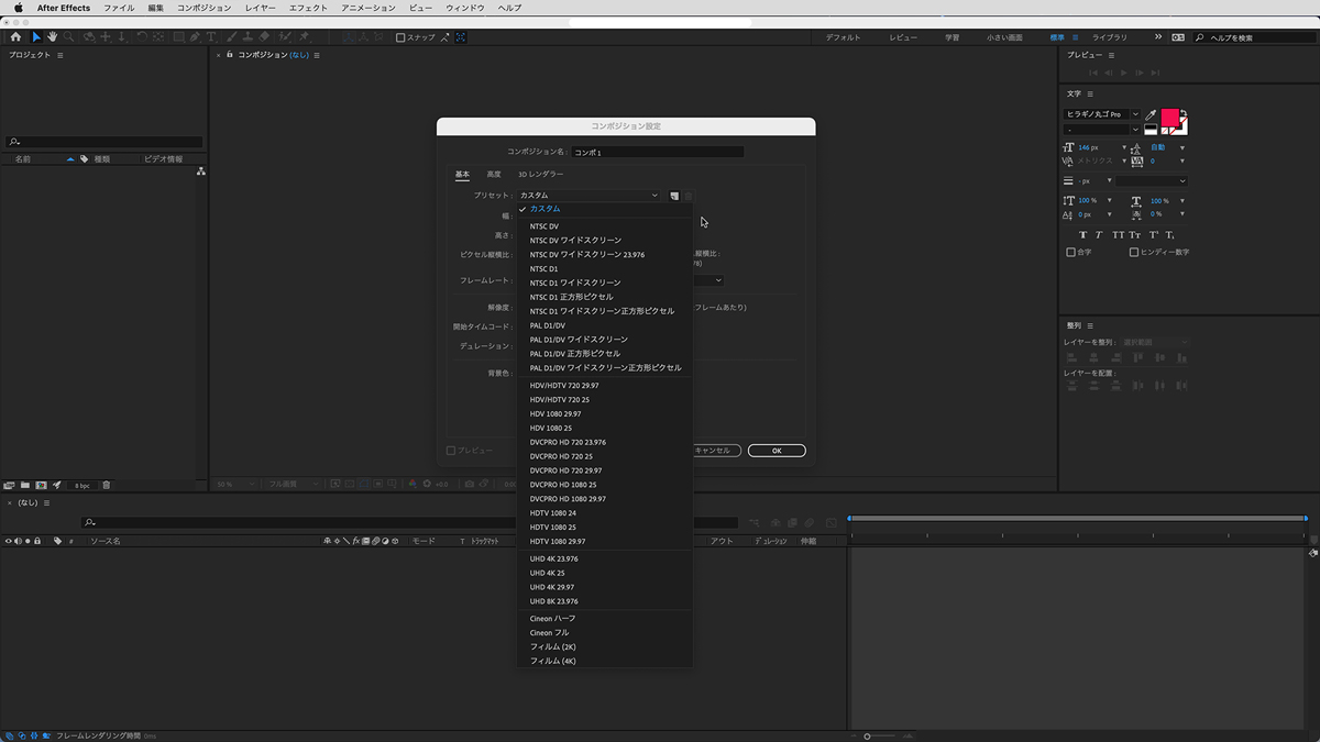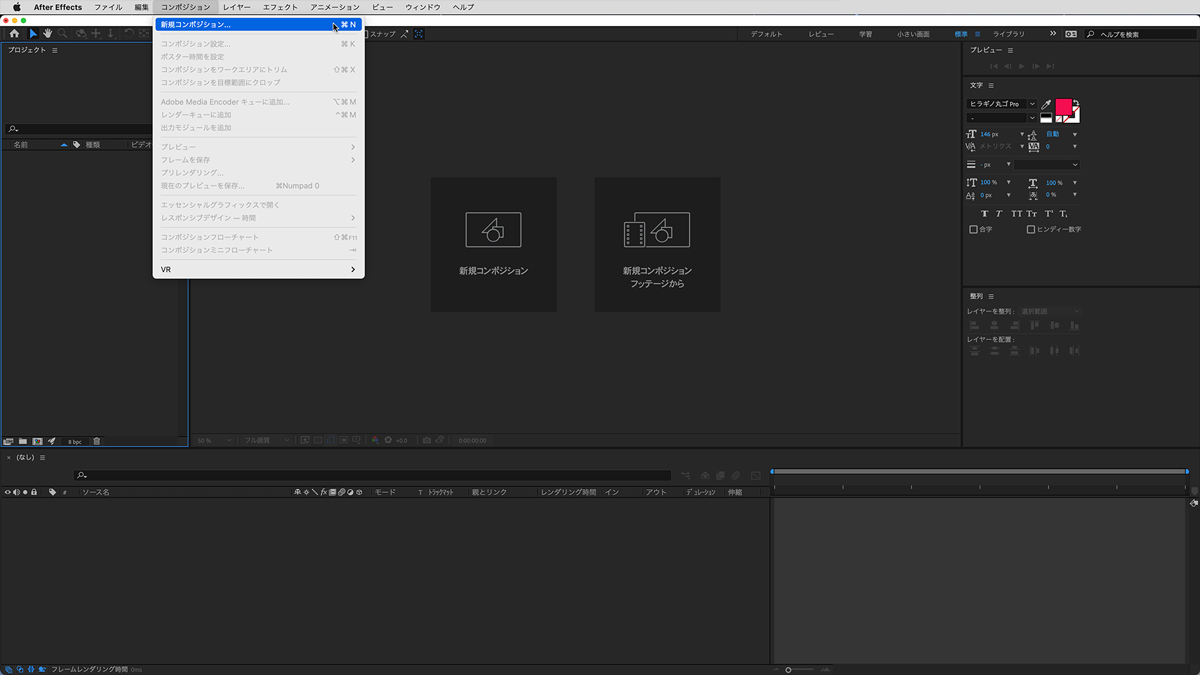 新規コンポジション作成