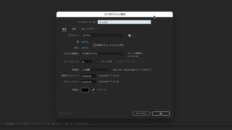 【AfterEffects】コンポジション設定