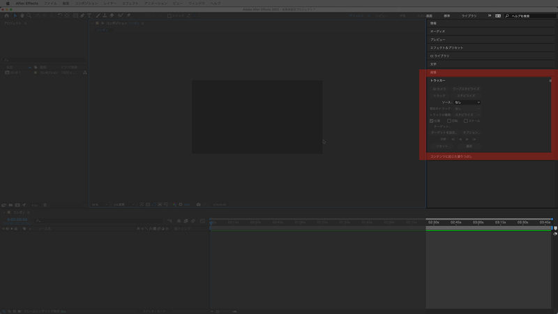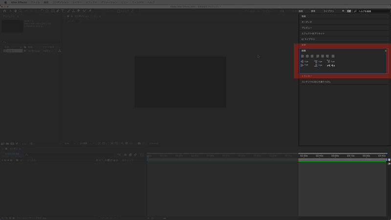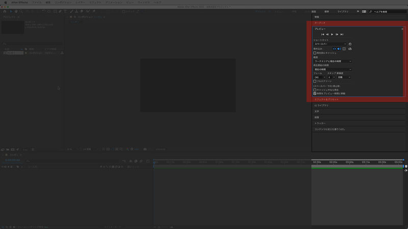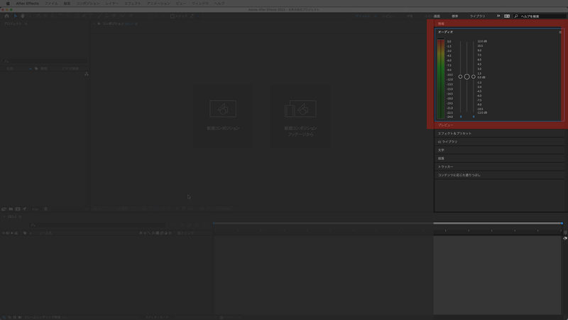 ワークスペースはAfterEffectsプロジェクトに応じて使い分けることが可能です。初期設定は「デフォルト」になっています