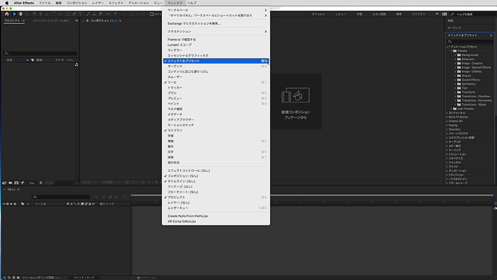 【Adobe AfterEffects】アニメーションプリセット一覧/確認方法