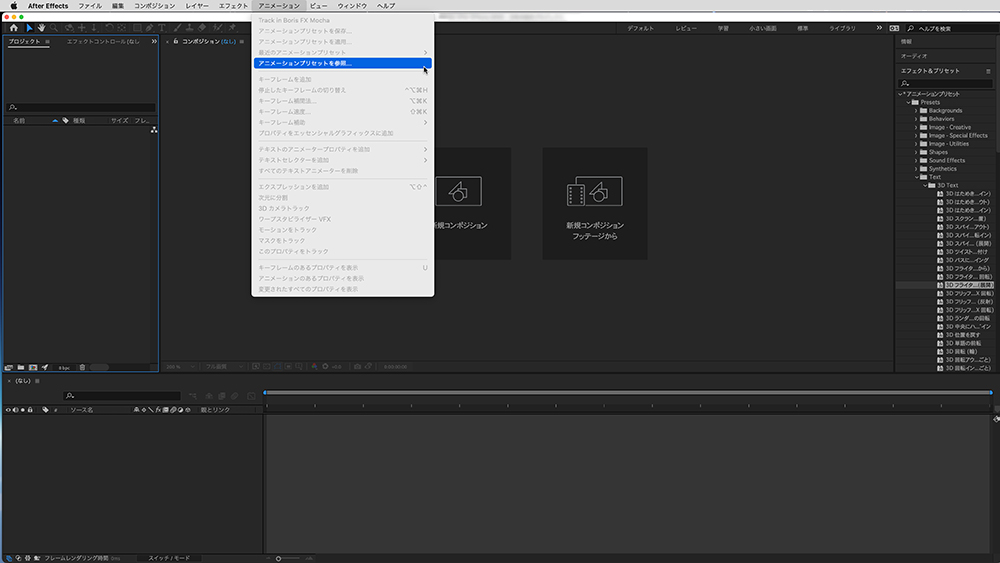 After Effectsには、多くのアニメーションプリセットが用意されています。